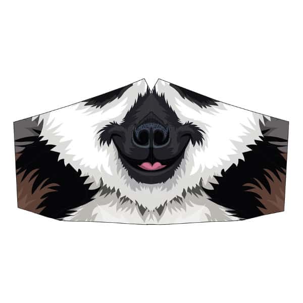 Put on your best animal smile with a whimsical fun adult lemur face mask! Illustrated by Peppermint Narwhal and made by Rollee Pollee, a portion of every sale from these masks goes to Rollee Pollee’s Saving Species Campaign.
